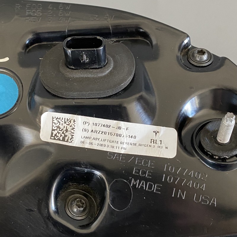 TESLA MODEL 3 TAIL LIGHT INNER RIGHT SIDE 1077402-00-F 2017 2018 2019 2020 OEM