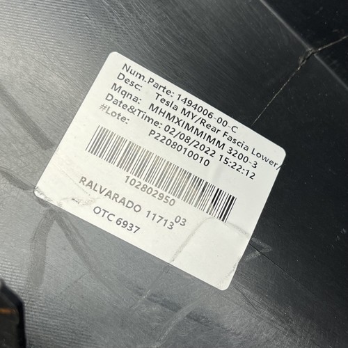 TESLA MODEL Y REAR BUMPER LOWER 2020 2021 2022 2023 OEM 1494006-00-C