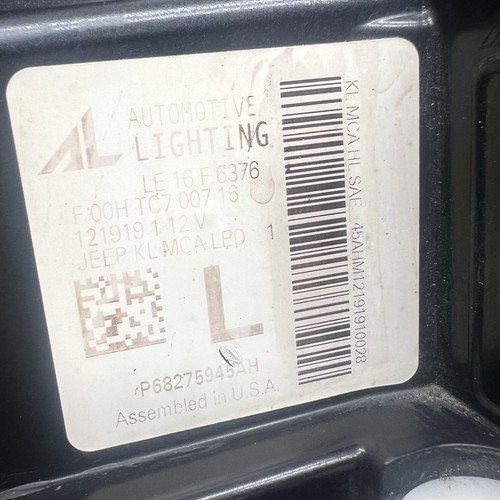 JEEP CHEROKEE HEADLIGHT LEFT DRIVER 2019 2020 2021 2022 OEM 68275945AH |