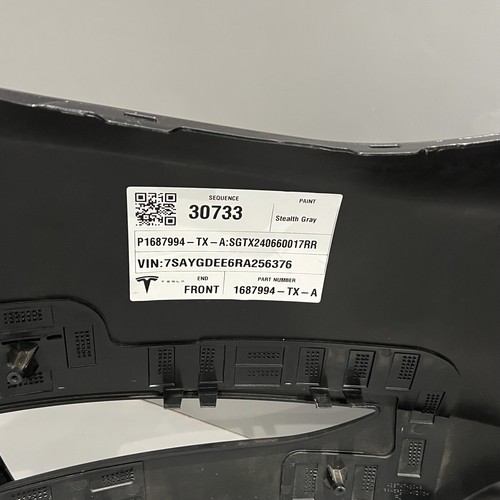 TESLA MODEL Y FRONT BUMPER 2023 2014 NON SENSOR 1687994-TX-A COLOR STEALTH GRAY MINOR SCRATCHES ALL OVER SEE MARKS FOR SCRATCHES RIGHT SIDE NEXT TO TAB BENT SEE MARK PART NUMBER MUST MATCH TO FIT Shipping Regular shipments are shipped with FedEx over size shipments (Bumpers, Hoods, Fenders, Doors) are shipped with a freight companies. Handling time is usually 1 business days. All other packages are shipped by Priority shipping. Payment We accept the following payment methods on ebay:PayPal Please contact us if you have any questions. Returns Please contact us for returns All sales are sold AS-IS with no warranty After item is returned we will refund 100% of the item price or send a replacement if available Item must be returned in original packaging and must be in exact same condition as it was sent out Products must be returned to us in their original condition and in their original packaging.