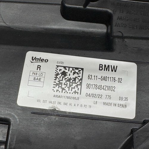 BMW X1 HEADLIGHT RIGHT PASSENGER 2020 2021 2022 LED 63115A01176 OEM