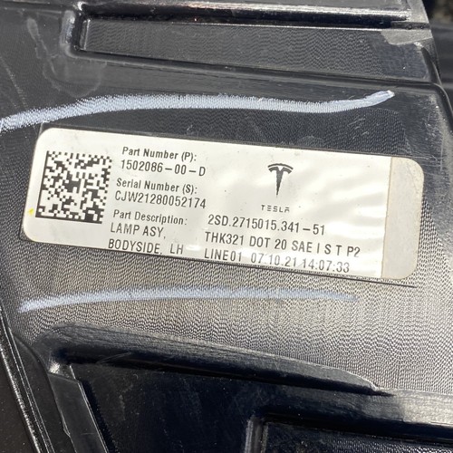 TESLA MODEL Y TAIL LIGHT LEFT DRIVER 2020 2021 2022 2023 LED OEM 1502086-00-D |
