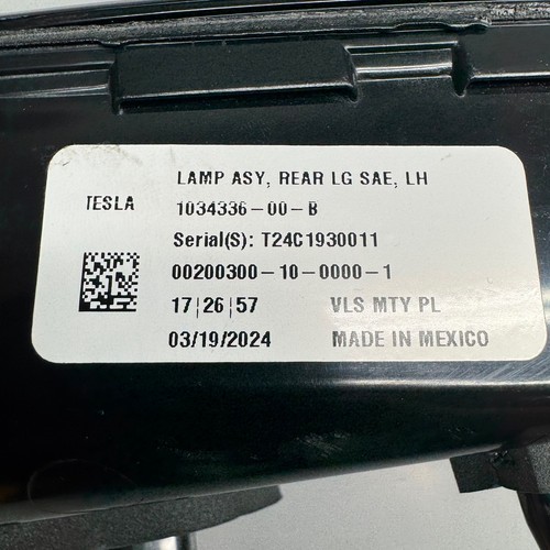 TESLA MODEL X TAIL LIGHT LEFT DRIVER 2016 2017 2018 2019 2020 OEM 1034336-00-B |